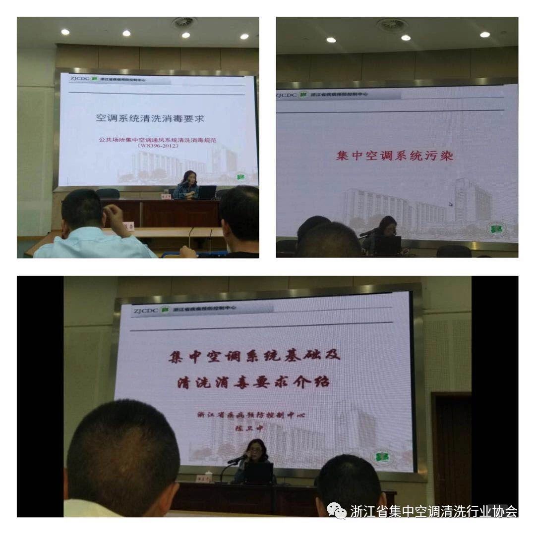 浙江省预防医学会和浙江省集中空调清洗行业协会于4月25日、26日,在浙江省疾病预防控制中心综合楼二楼会议室联合举办了为期两天的集中空调清洗专业技术培训班。