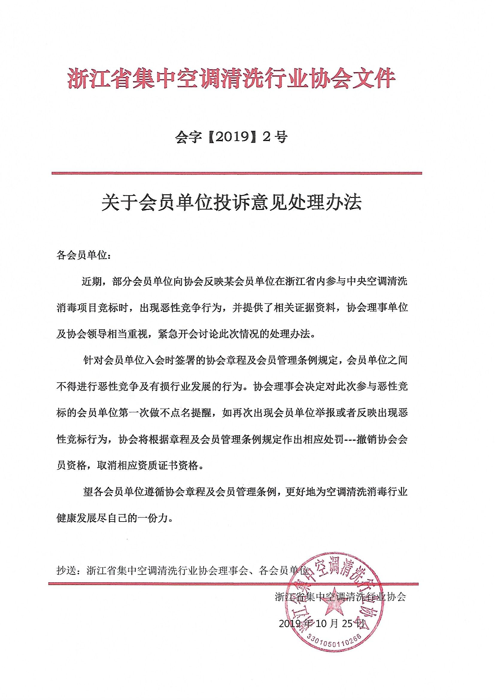 2020-01-05关于会员单位投诉意见处理办法
